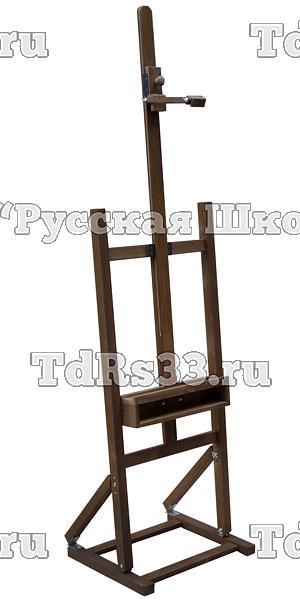 Складной станковый мольберт с изменяемым наклоном верхней рамы (80, 85 и 90 град.), подвижной направляющей лотком-ящиком для кистей и красок.