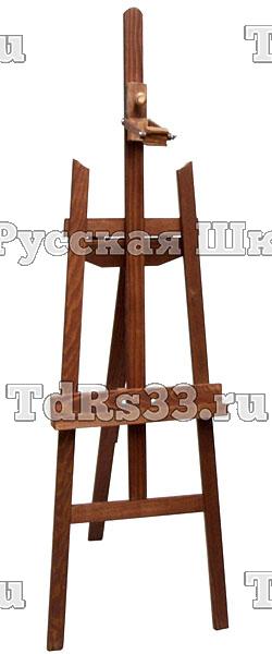 Небольшой домашний мольберт-тренога классического дизайна с лотком и бегунком, позволяющим менять наклон холста.