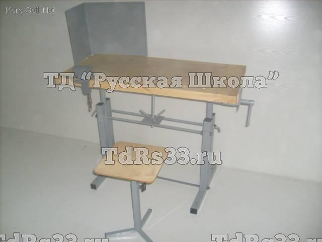 ВК-У 1000/500/660-900 Верстак комбинированный учебный с тисками и струбциной, в комплекте с защитным экраном и табуретом.